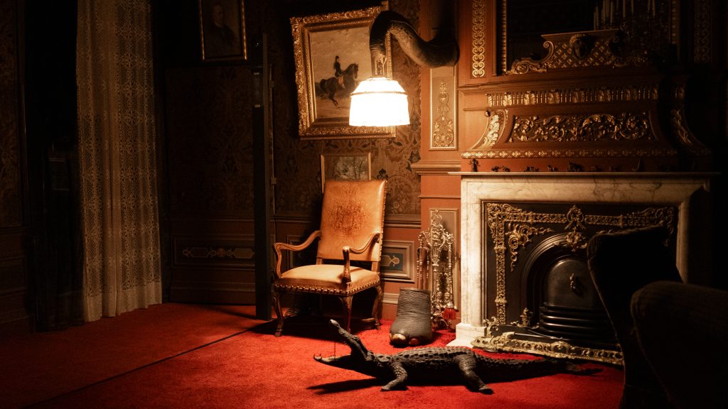 The project includes an audio tour in the historical quarters of the palace, that takes the listener on a journey through these often untold stories that underlie official historical narratives; a one-channel video work that views the palace in the dark as a crime scene; and a series of photographs. The audio tour is available also on the Paleis Het Loo app.